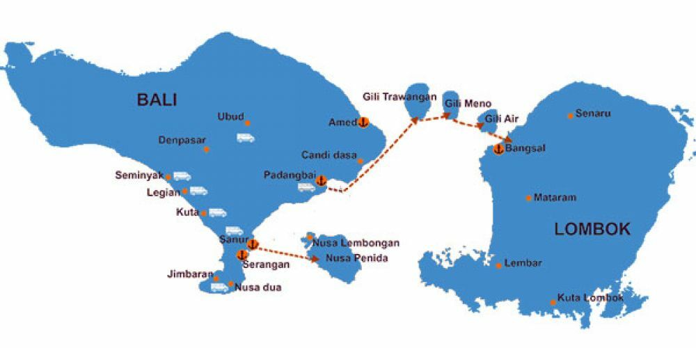 In the Gili Islands, there is no motorised transport, but the islands are small. Travel is by horse and cart (cidomo), which you can arrange upon arrival if your hotel is a long walk away, or contact your hotel beforehand to have it standing by when you arrive.